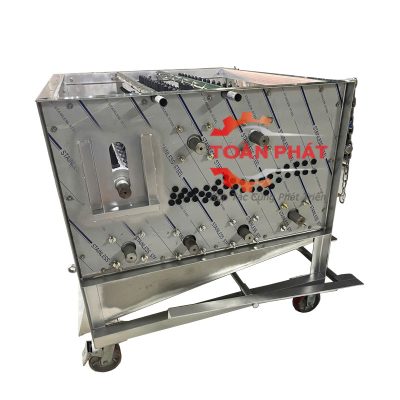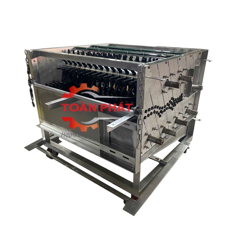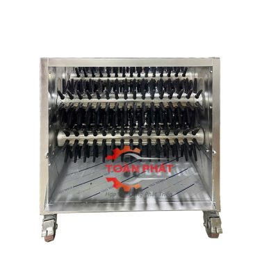 Khoang vặt lông của máy vặt lông gà vịt công nghiệp được thiết kế dạng nằm ngang, kích thước rộng rãi hơn hẳn so với những loại máy có thiết kế đứng. Mỗi mẻ vặt có thể chứa từ 20-26 con gà vịt tùy thuộc vào trọng lượng gà vịt. Khung khoang vặt chắc chắn, chịu tải tốt, giúp máy vận hành hiệu quả và đảm bảo độ bền lâu dài.