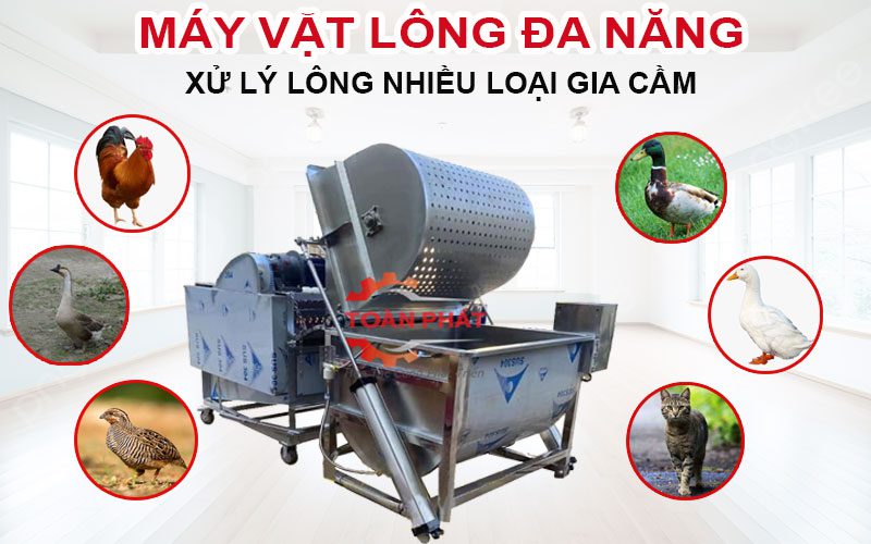 Máy có khả năng vặt sạch lông nhiều loại gia cầm như: gà, vịt, ngan, ngỗng, chim, thỏ…với tỷ lệ sạch lên đến 99% mà không gây trầy da hay dập cánh.