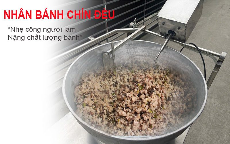 Quy trình xào nhân bằng máy xào nhân bánh giò tự động bằng chảo gang